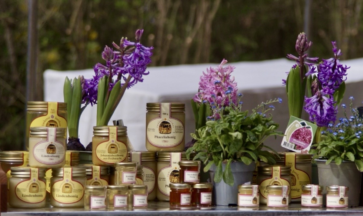 Frühlingsblumenstand mit liebevoll ausgewählten Pflanzen